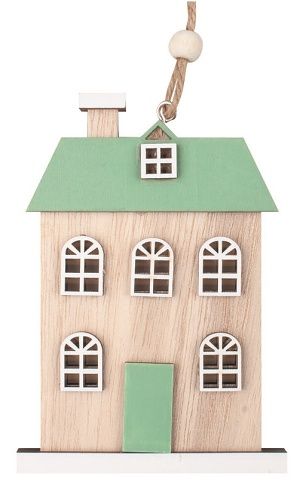 Dřevěný domek zelený na zavěšení, 8,5 x 11,5 x 0,5 cm Jednoduchý dřevěný domek na zavěšení je ideální pro zimní, vánoční i celoroční dekorace. Díky přírodnímu provedení a lehké konstrukci se hodí na stromeček, větvičky, okno nebo věnec. Využití: Skvělý jako závěsná ozdoba na vánoční výzdobu nebo adventní aranžmá. Vlastnosti: rozměry: 8,5 x 11,5 x 0,5 cmmateriál: dřevobarva: přírodní, zelenás provázkem na zavěšeníPřírodní dekorace, která se hodí do každého interiéru – jednoduchá, a přesto kouzelná.