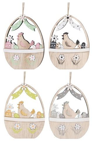 Dřevěný košíček se slepičkou na zavěšení 9 cm