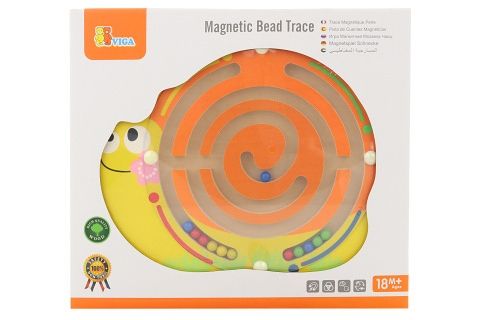Dřevěný magnetický labyrint s kuličkami ve tvaru šneka. Rozměry cca 21,5 x 19 cm. Rozměry balení cca 25 x 22 x 4 cm. Věk 18m+