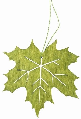 Dřevěný list na zavěšení zelený 10 cm