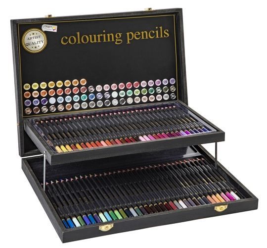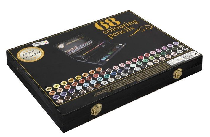 Dvoupatrový dřevěný malířský kufřík obsahuje 68 ks pastelek.
