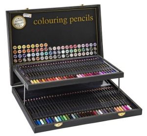 Dřevěný malířský kufřík s pastelkami 68 ks
