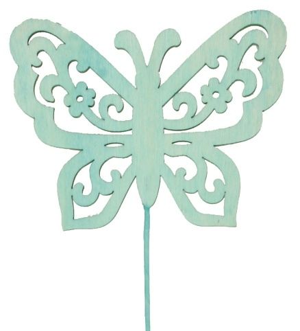 Dřevěný motýl 8 cm tyrkysový + drátek