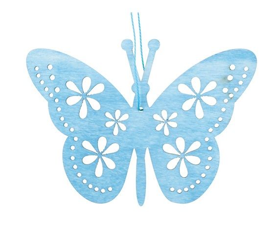 Dřevěný motýl na zavěšení, modrý