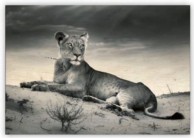 Dřevěný obraz Lioness / 48,5cm x 34cm / O012