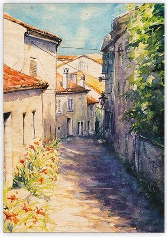 Dřevěný obraz Old Street / 34cm x 48,5cm / O033