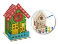 Dřevěný zahradní ptačí domeček 3D – sestav si svůj vlastní domeček a vymaluj ho přiloženými barvami. Balení obsahuje dřevěný domeček, 6 barev, lepidlo a štětec.