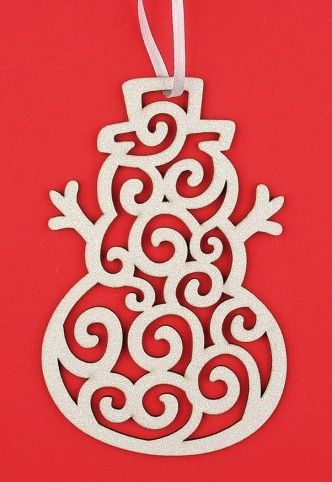 Dřevěný sněhulák závěsný,bílý glitr,10cm