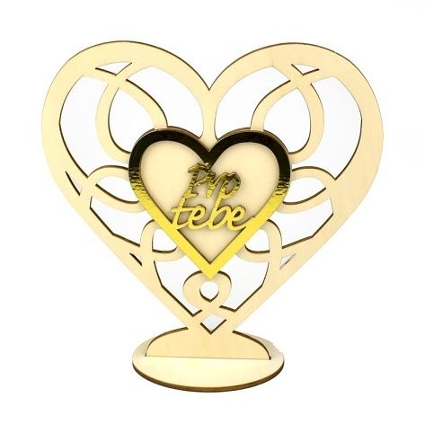 Dřevěný stojan, srdce se zlatou fólií, Pro Tebe