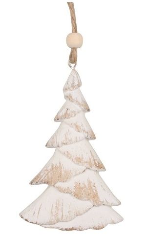 Dřevěný stromek s patinou na zavěšení béžová 9,5 cm
