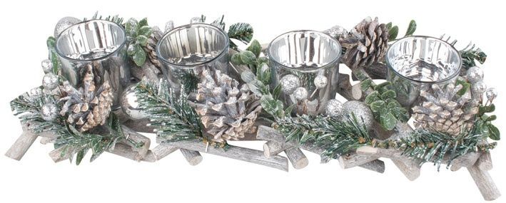 Dřevěný svícen na 4 svíčky se stříbrnými doplňky 40 cm