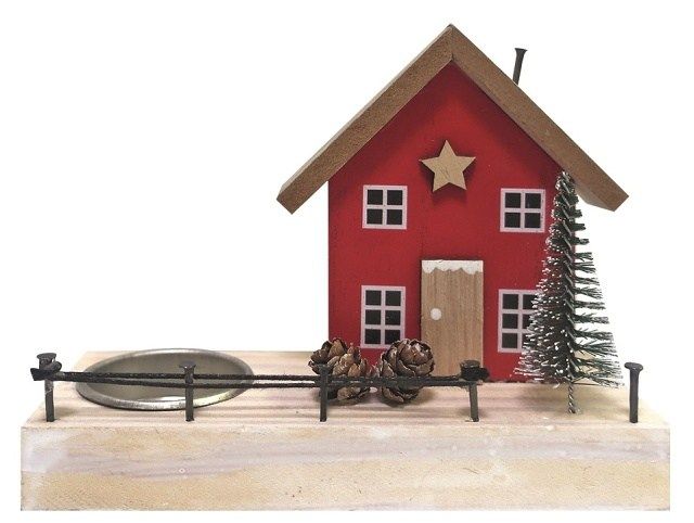 Dřevěná dekorace na svíčku s domečkem Vytvořte si kouzelnou vánoční atmosféru s dřevěnou dekorací s domečkem na svíčku. Doporučujeme používat s klasickou čajovou svíčkou. Vhodné jako dárek.