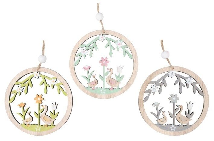 Dřevěný věneček s husami na zavěšení 10 cm