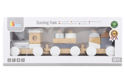 Dřevěný vláček skládačka o rozměru cca 41 x 12 x 8 cm. Rozměry balení cca 44,5 x 19 x 9 cm. Věk 18m+