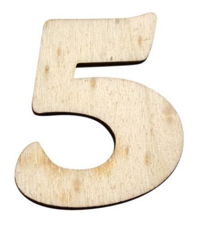 Dřevěný výřez číslice 5, 3,5 x 4 cm