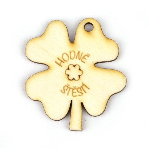 Dřevěný výřez čtyřlístek, hodně štěstí, 4,5 x 5 cm