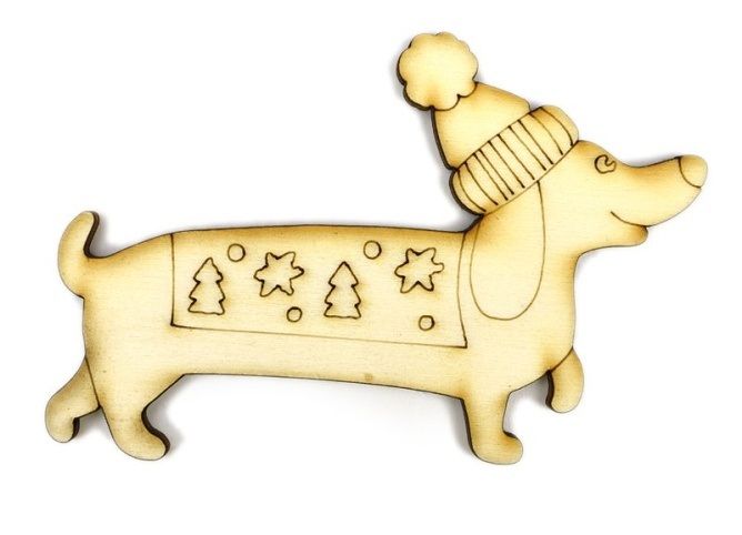 Dřevěný výřez vánoční jezevčík je originální a dekorativní doplněk pro vaše vánoční tvoření. Je vyřezán z kvalitního dřeva a detailně propracován. Má výšku 6 cm a šířku 9 cm.