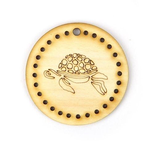 Dřevěný výřez kolečko s želvou, s dírkami, 5,5 cm