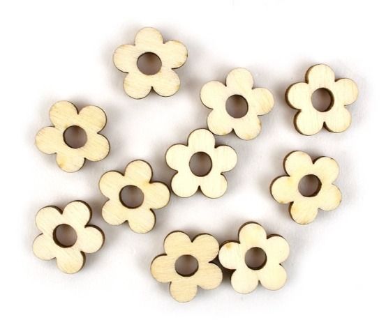 Dřevěný výřez, kytičky, 1,3 cm, 10 ks