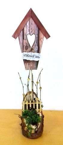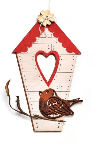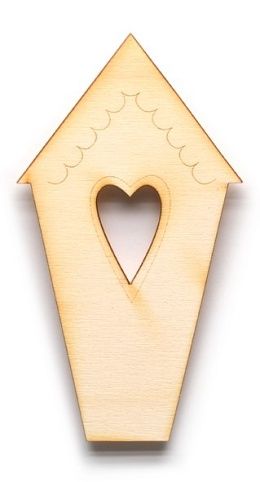 dřevěný výřez ve tvaru ptačí budky se srdíčkem, který si určitě zamilujete