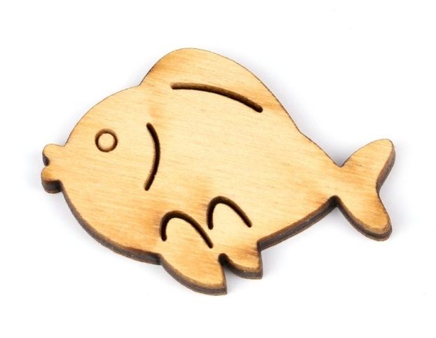 Dřevěný výřez rybka, 4 x 2,7 cm, 5ks