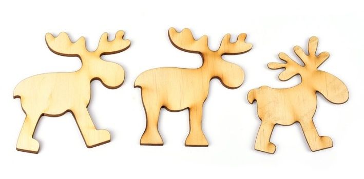 Dřevěný výřez sob, 7 x 8 cm, sada 3 ks