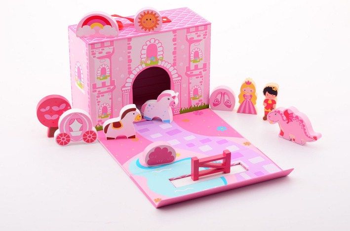 Dřevěný zámek pro princezny v praktickém kufříku. Kvalitní