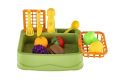 Dřez na mytí nádobí pro malé hospodyňky. Sada obsahuje krájecí ovoce a doplňky. Kohoutek na vodu je formou pumpičky.