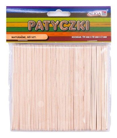 Dřívka natur o velikosti 115 x10 x 2mm. V balení 60 ks.