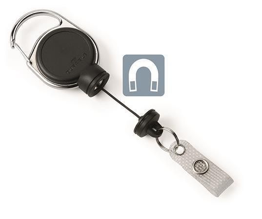 Vlastnosti: karabina pro uchycení k oděvu a průhledný gumový úchyt s uzavíráním na patent; navíjecí pás;