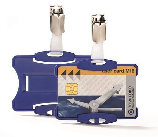 Držák jmenovek s klipem, modrá, 54 x 85 mm, DURABLE 811806