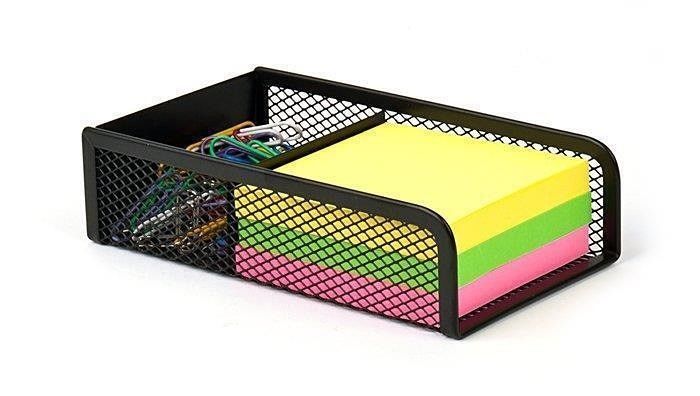 Držák na bloček a kancelářské sponky, černá, drátěný, VICTORIA