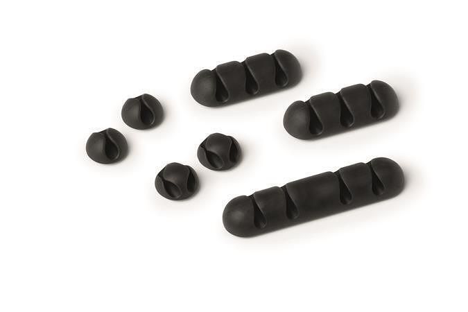Speciální funkce: samolepicí držák pro 1, 2, 3 a 4 kabely; ideální pro připojení mobilních telefonů a USB kabelů do průměru 5 mm; vyrobeno z pružného plastu