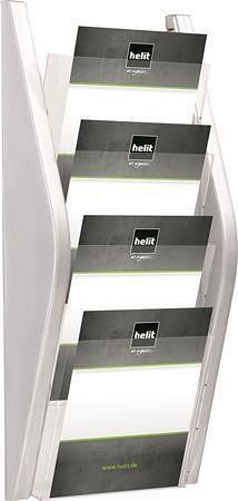 Držák na katalogy, stříbrný, nástěnný, A4, 4 oddíly, HELIT