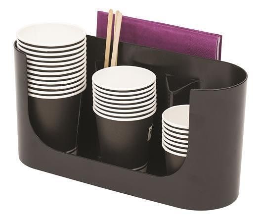 Praktický držák na 3 nápoje v kelímku, míchátka a ubrousky