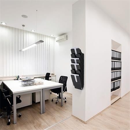 Držák sloužící k prezentaci prospektů, katalogů a brožur o maximální velikosti A4. Držák má 6 přihrádek.