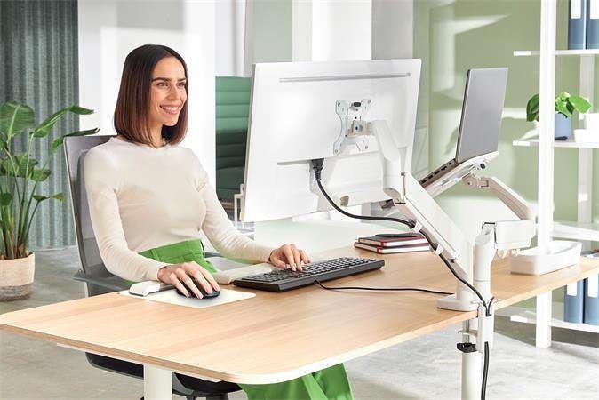 Leitz úsporný držák monitoru a notebooku má pozitivní vliv na držení těla a podporuje pohodlí krku, ramen a očí, pokud jsou monitor a notebook nastaveny do správné a doporučené ergonomické polohy.