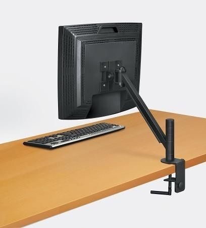 Jednoduchá montáž dvoudílného úchytu umožňuje umístění ramena mezi psacím stolem a stěnou