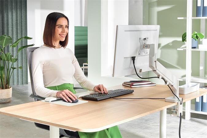 Úsporný držák na monitor Leitz má pozitivní vliv na držení těla a podporuje pohodlí krku, ramen a očí, pokud je výška monitoru nastavena správně a v souladu s doporučenou ergonomickou pozicí.