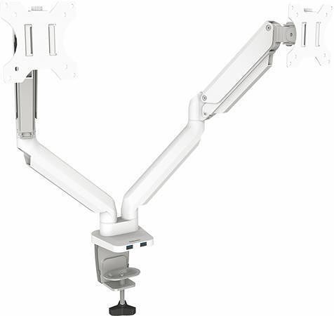 Nastavitelný držák monitoru s plynovou pružinou pro 2 monitory s maximální úhlopříčkou 32" a max. hmotností zatížení jednoho ramene 1,5 - 8 kg.