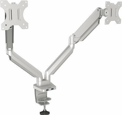 Nastavitelný držák monitoru s plynovou pružinou pro 2 monitory s maximální úhlopříčkou 32" a max. hmotností zatížení jednoho ramene 1,5 - 8 kg.