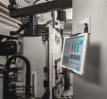 Nástěnný držák na tablet nebo telefon s nastavitelným ramenem.