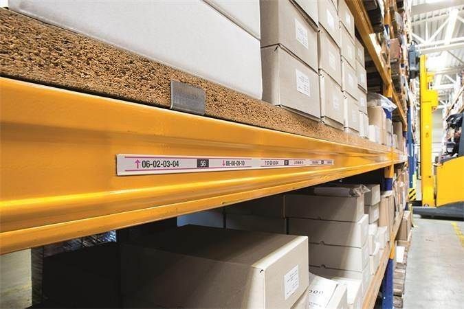Samolepicí držák "Scanfix", který je vhodný pro připevnění štítků ve skladech nebo prodejnách.