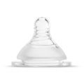 Dudlík na láhev silikonový 2 ks v balení pro hustší stravu 6m+ – dudlík podobný bradavce prsu z vysoce kvalitní silikonovou texturou, která dělá proces krmení podobný mateřskému doteku, anti kolikový systém – vzduchový ventil zabraňuje dodatečnému požití vzduchu pro zvýšení pohodlí dítěte.