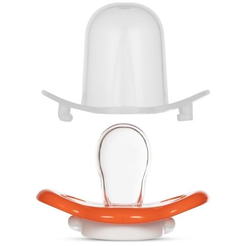 Dudlík s kroužkem silikonový symetrický oranžový 6m+