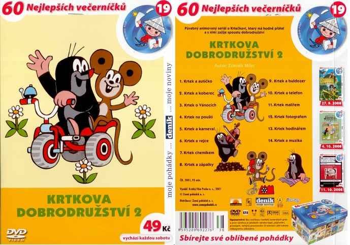 14 příběhů, délka 95 min., 1. Krtek a autíčko, 2. Krtek a koberec, 3. Krtek o Vánocích, 4. Krtek na poušti, 5. Krtek a karneval, 6. Krtek a vejce, 7. Krtek chemikem, 8. Krtek a zápalky, 9. Krtek a buldozer, 10. Krtek a telefon, 11. Krtek malířem, 12.Kr...