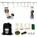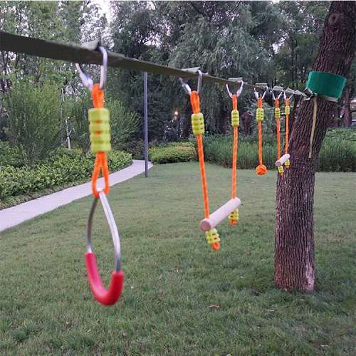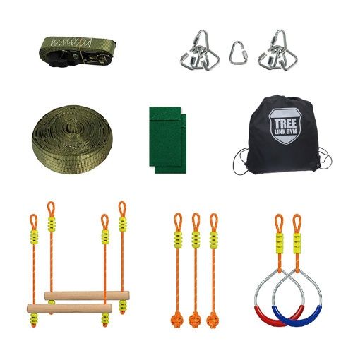 Součástí této Ninja překážkové dráhy je lezecké lano s upevňovacími popruhy na strom, 2 chrániče stromů, 2 zachytávací hrazdičky, 3 zachytávací lana a 2 zachytávací kruhy. Součástí balení je také 9 karabin pro zavěšení překážek a praktická taška pro uschování všech částí dráhy.Nezbytný pomocník pro objevitele venkovní zábavy na moderním dětském hřišti nebo v lese, parku apod. Hlavní vlastnosti:Nosnost: 100 kgPrvky se dají zavěsit na karabinyMožnost měnit prvky a vše přizpůsobit jak malým tak větším dětem