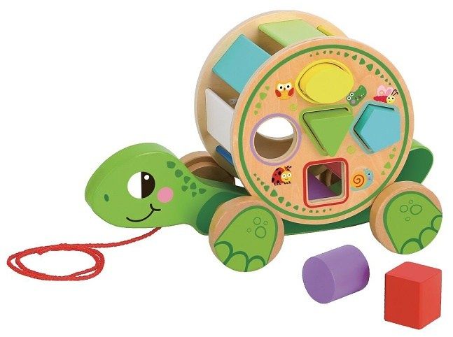 Každý ví, že bez krunýře není želva! Ale copak to nese tato? Tato želva je opravdu zvláštní případ! Zásobník na jejích zádech má celkem 6 otvorů (1 velký a 5 menších) přes které lze vházet nejrůznější tvary. Hračka má dvě funkce. Je to třídič tvarů i kamarád do nepohody! Vpředu se vyskytuje šňůrka za kterou lze tahat - želva tedy bude na každém krůčku s vaší ratolestí! Hra s ní poskytuje mnoho vzdělávacích výhod. Učí rozpoznávání tvarů a barev, rozvíjí manuální zručnost a zlepšuje koordinaci oko-ruka. Hlavní vlastnosti:• podporuje jemnou a hrubou motoriku• rozvíjí manuální zručnost a koordinaci oko-ruka• kamarádka i edukativní hračka zároveň