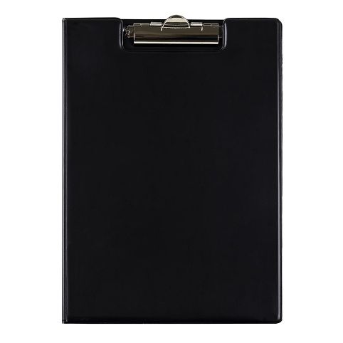 Uzavíratelná psací podložka s ozdobným kovovým klipem, vyrobena z extra pevné lepenky. Vnitřní průhledná kapsa