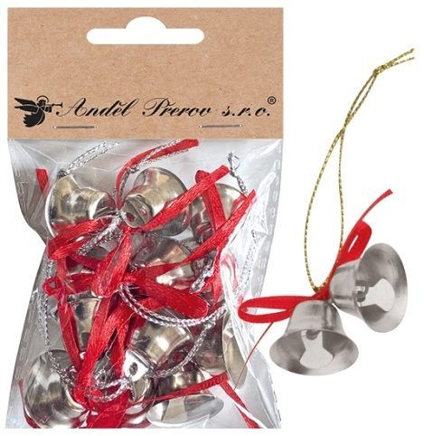 Dvojité zvonečky stříbrné 4 x 2 x 2 cm set, 6 setů v sáčku